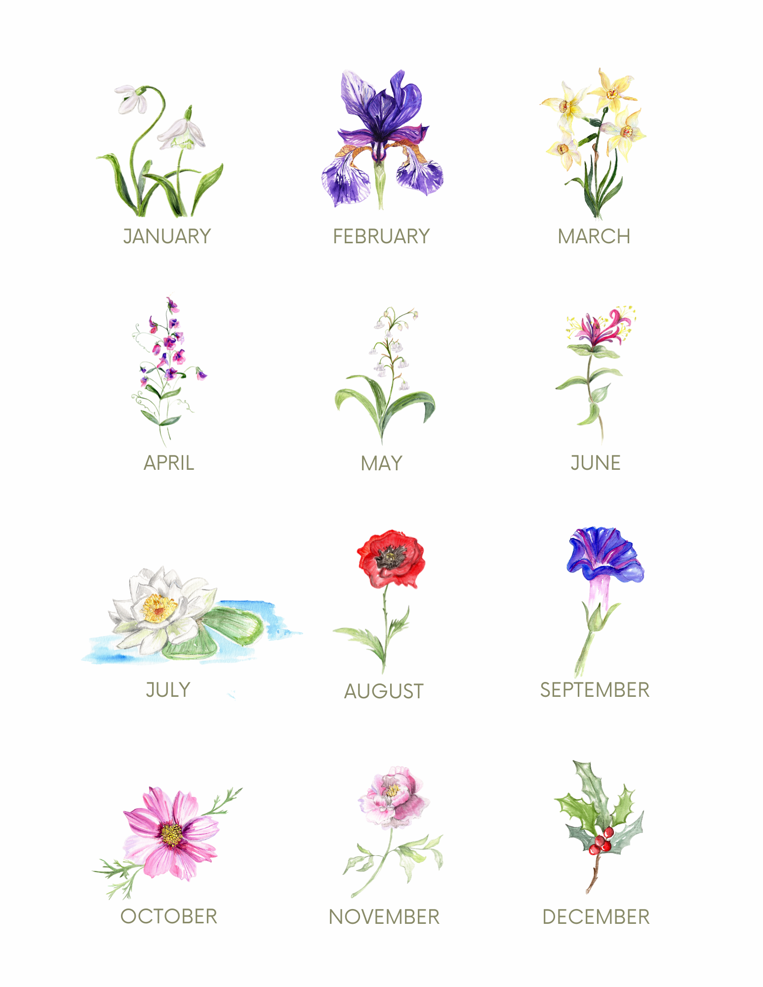 Each month is paired with its traditional flower, creating a timeless and thoughtful design that works beautifully for birthdays, keepsakes, or everyday notes.