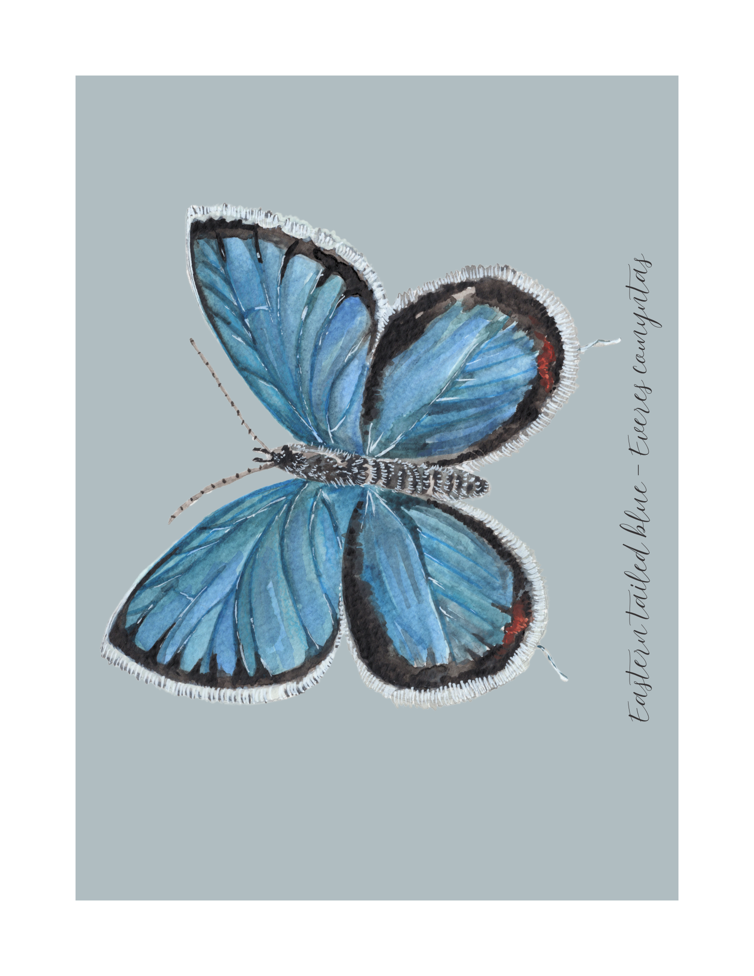 The Eastern Tailed-Blue (Cupido comyntas) is a tiny yet enchanting butterfly, easily recognized by the delicate tails on its hindwings and the shimmering blue that flashes when it opens its wings. When closed, its wings appear soft gray with tiny orange spots, allowing it to blend into grasses and meadows where it thrives. Though small, this butterfly is often abundant, bringing little sparks of color to roadsides, fields, and gardens throughout the summer.
